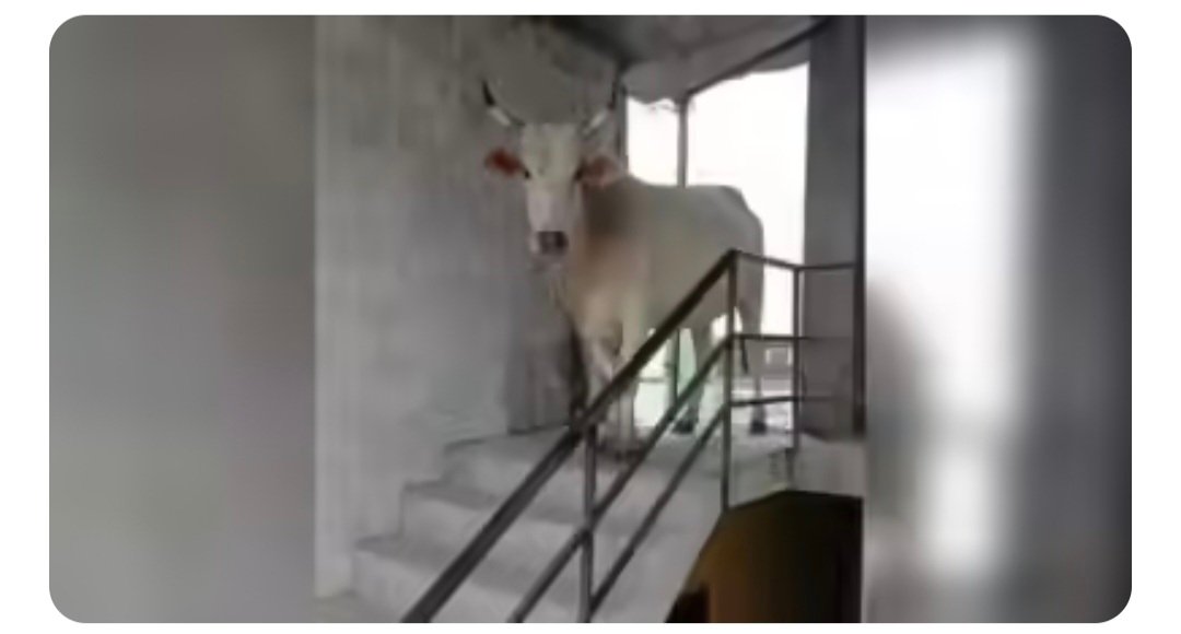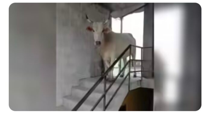 लखनऊ नगर निगम की तत्परता से बची गाय की जान, चौथी मंजिल पर फंसी थी भारी भरकम गाय