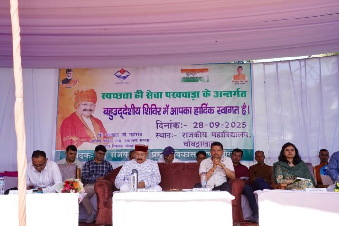 उक्त बात प्रदेश के पर्यटन, लोक निर्माण, सिंचाई, पंचायतीराज, ग्रामीण निर्माण, जलागम, धर्मस्व एवं संस्कृति मंत्री एवं चौबट्टाखाल विधायक सतपाल महाराज ने स्वच्छता ही सेवा-2025 पखवाड़ा के अंतर्गत रविवार को राजकीय डिग्री कॉलेज, चौबट्टाखाल में आयोजित बहुउद्देशीय शिविर में बतौर मुख्य अतिथि प्रतिभाग करते हुए कही। बहुउद्देशीय शिविर में प्रतिभाग कर रहे सभी प्रबुद्धजनों, पार्टी कार्यकर्ताओं एवं पदाधिकारियों का अभिनन्दन करते हुए उन्होंने कहा कि हमारी सरकार लगातार प्रदेश का विकास करने में लगी है। विधानसभा क्षेत्र चौबट्टाखाल के अंतर्गत 2022 के बाद इन तीन वर्षों में प्रथम चरण में 53 किलोमीटर सड़कों की स्वीकृति दी गयी, इनमें से अधिकतर मोटरमार्गों का रोड़ कटान का कार्य हो चुका है।