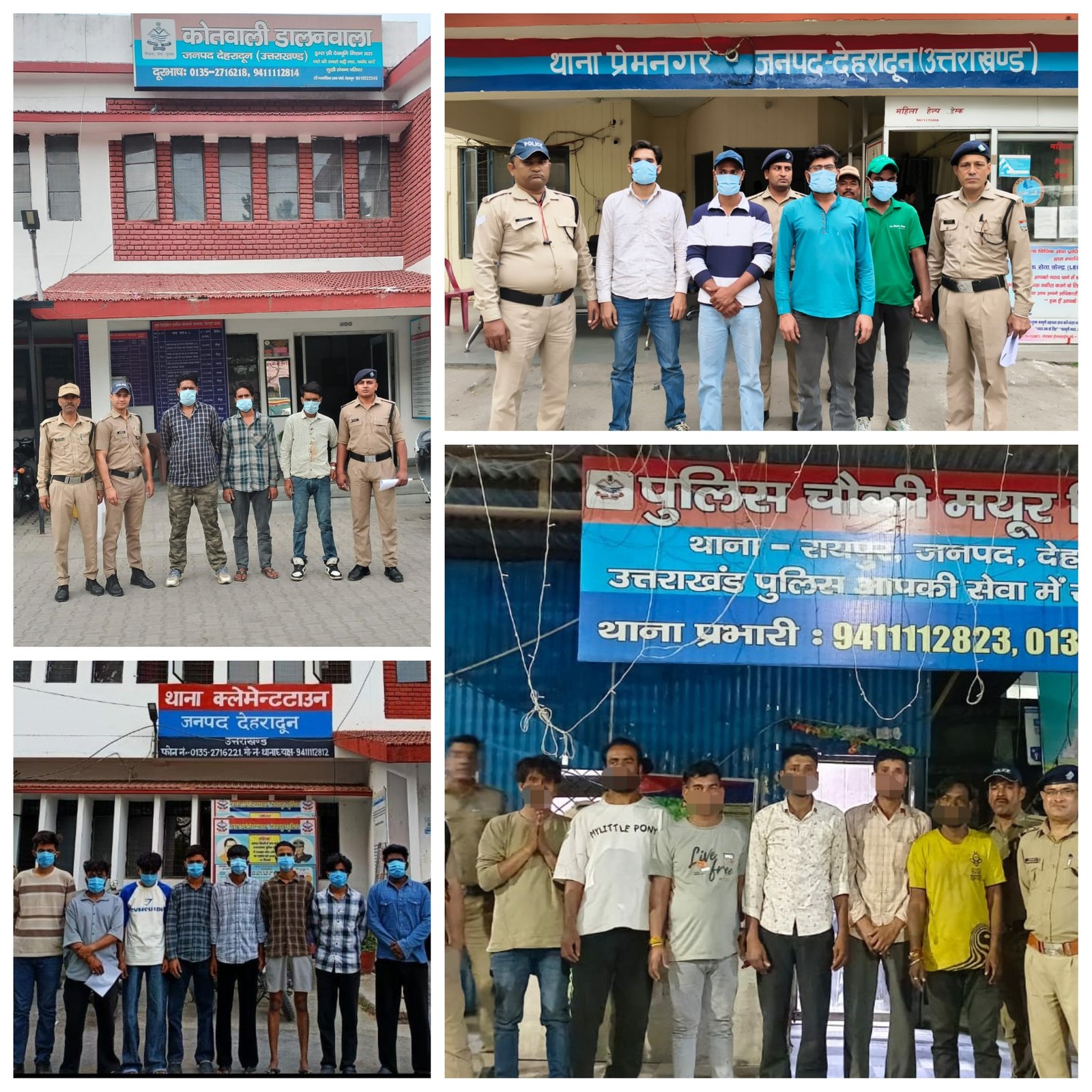 इसी क्रम में दिनांक 02/03‑04‑2026 की रात्रिएसएसपी देहरादून के निर्देशों पर पुलिस अधीक्षक नगर तथा पुलिस अधीक्षक ऋषिकेश के नेतृत्व में पुलिस टीमों ने नगर क्षेत्र में अवैध गतिविधियों में लिप्त या संदिग्ध व्यक्तियों के ठिकानों पर औचक छापेमारी की कार्यवाही की। कार्यवाही के दौरान अलग‑अलग स्थानों से 14 संदिग्धों को 172 BNSS में हिरासत में लिया गया। इसके अलावा सार्वजनिक स्थानों पर हुड़दंग कर, शांति व्यवस्था प्रभावित करने का प्रयास कर रहे 07 व्यक्तियों को 170 BNSS में गिरफ्तार किया गया**, जिनमें प्रेमनगर क्षेत्र से 04 और डालनवाला से 03 व्यक्तियों का नाम शामिल है।