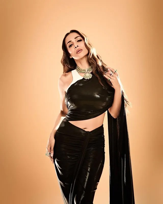 मलाइका अरोड़ा की लेटेस्ट तस्वीरों में आप देख सकते हैं उन्होंने ब्लैक कलर की साड़ी पहनी हुई है, जिसमें वो ग्लैमरस और हॉट लुक में पोज देती हुई नजर आ रही हैं।