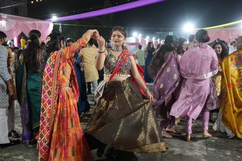 कार्यक्रम का समापन गरबा नाइट के साथ हुआ, जिसमें छात्र-छात्राओं, संकाय सदस्यों और अतिथियों ने मिलकर ढोल और संगीत की थाप पर गरबा डांस का आनंद लिया। इस दौरान परिसर उत्साह, रंगों और सांस्कृतिक एकता से सराबोर हो गया।