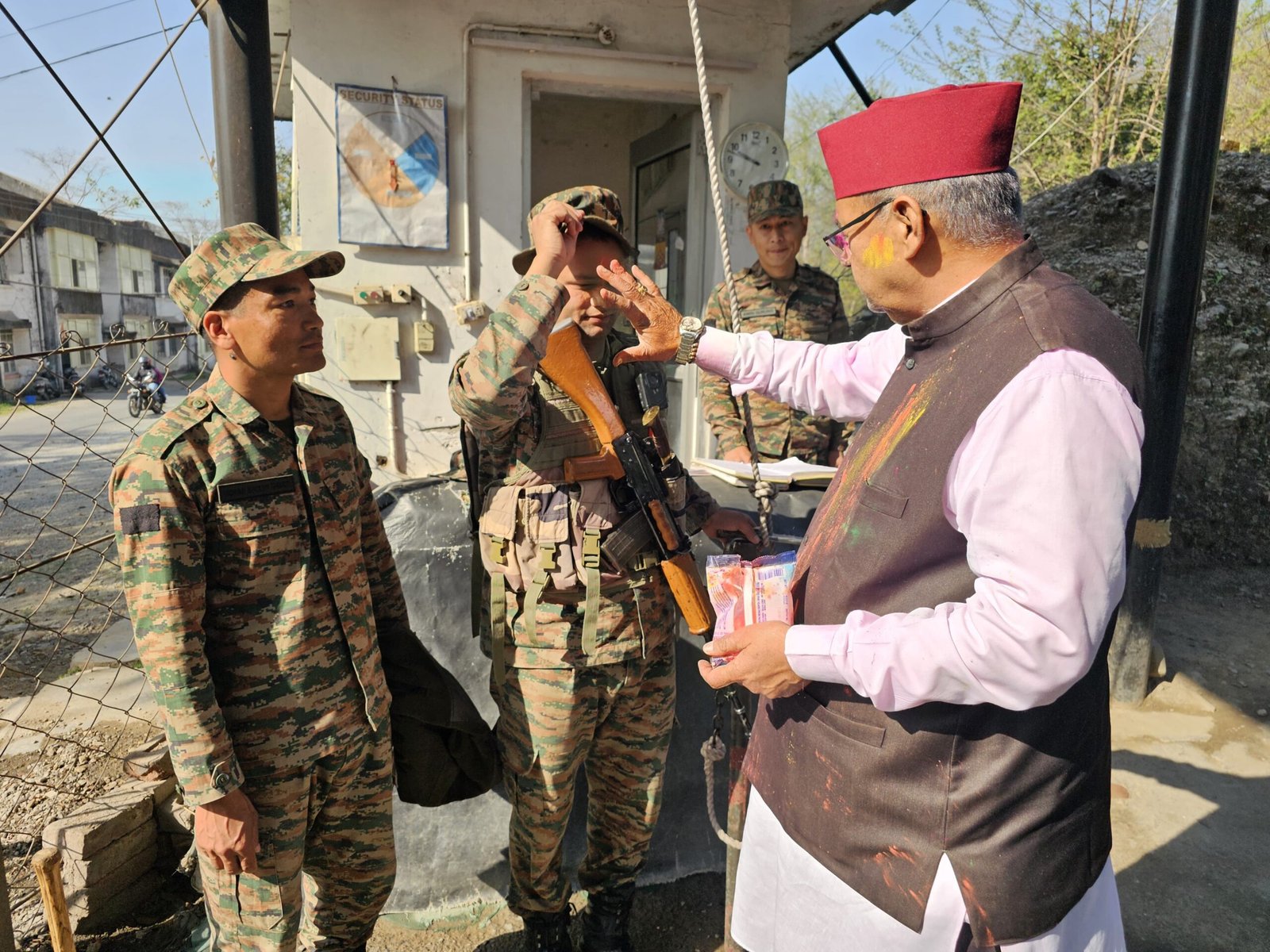 सैनिकों संग मिठाई बाँटकर होली का रंग साझा करते मंत्री गणेश जोशी