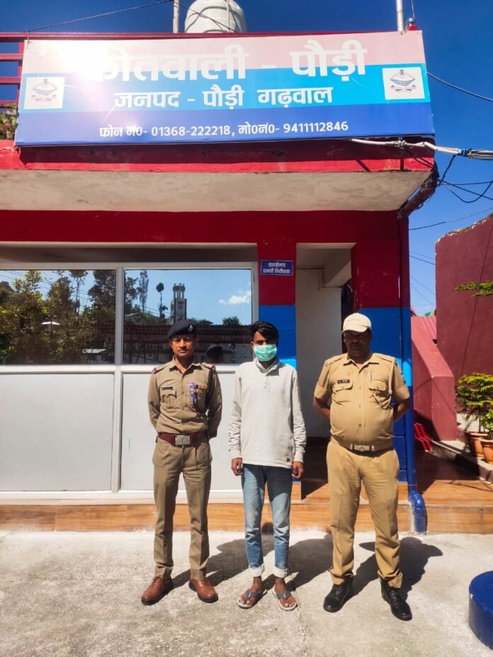 गिरफ्तार व्यक्ति का नाम गौरव कुमार (उम्र 22 वर्ष) पुत्र गयालू दास, निवासी ग्राम चिन्डालू पौडी गढवाल है।