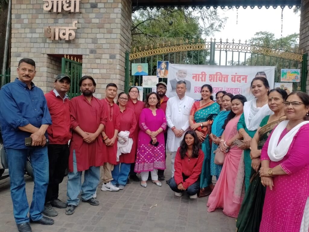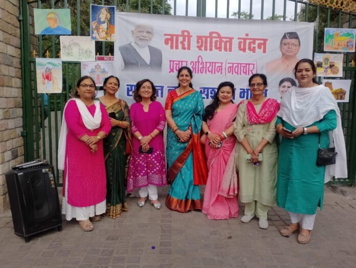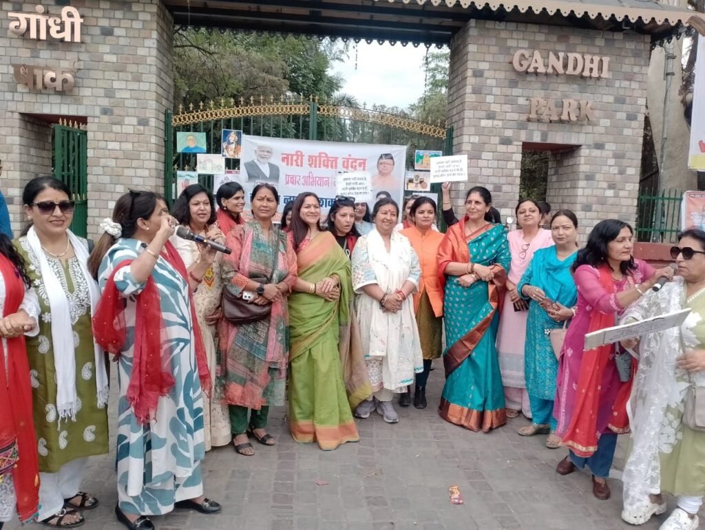 देहरादून,। राजधानी के गांधी पार्क के समीप शुक्रवार को ‘नारी शक्ति वंदन अधिनियम’ के समर्थन में एक भव्य सांस्कृतिक नवाचार कार्यक्रम का आयोजन किया गया। उत्तराखंड संस्कृति, साहित्य एवं कला परिषद की उपाध्यक्ष (राज्यमंत्री) मधु भट्ट के नेतृत्व में आयोजित इस कार्यक्रम में महिलाओं ने रचनात्मक तरीके से शासन और निर्णय प्रक्रिया में अपनी एक-तिहाई भागीदारी सुनिश्चित करने की पुरजोर माँग उठाई।