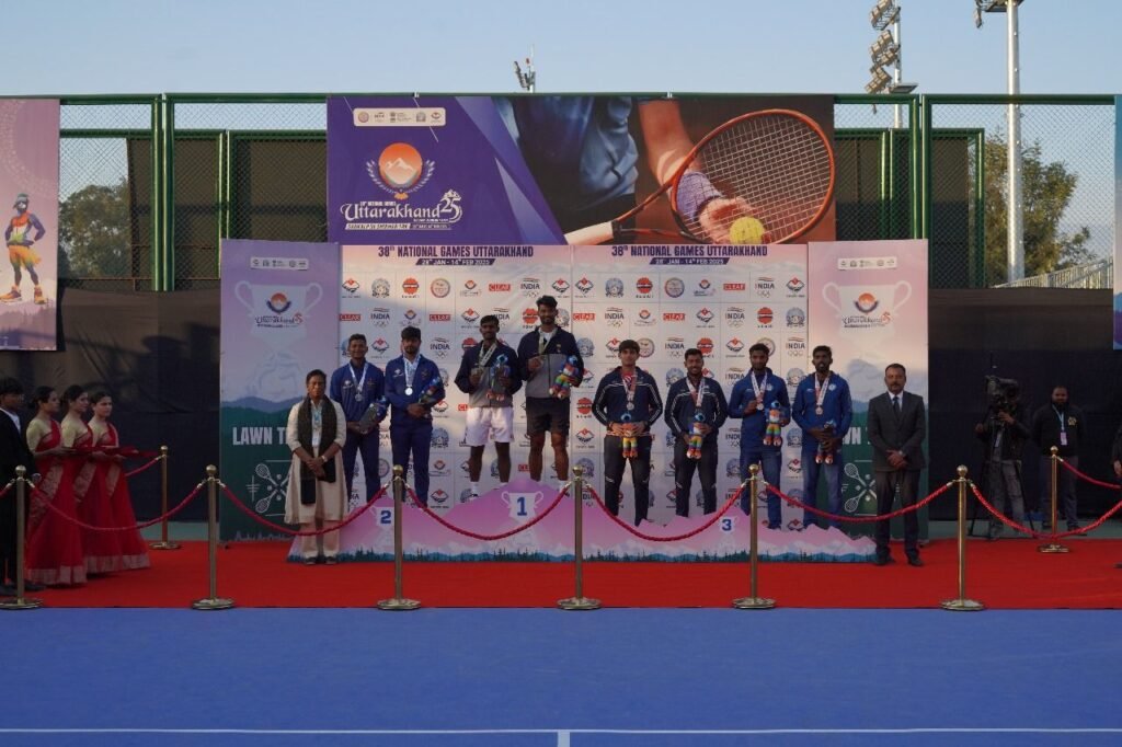 दिनांक 11फरवरी2025।देहरादून के परेड ग्राउंड स्थित टेनिस कोर्ट में 38वें राष्ट्रीय खेल की लॉन टेनिस स्पर्धा के सातवें और अंतिम दिन रोमांचक फाइनल मुकाबले खेले गए। मिश्रित युगल, पुरुष एकल और महिला एकल के फाइनल में शानदार प्रदर्शन देखने को मिला, जहां तमिलनाडु, सर्विसेज और गुजरात ने स्वर्ण पदक पर कब्जा जमाया।