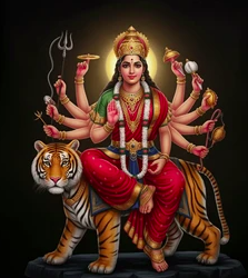 माँ की दस भुजाएँ दसों दिशाओं (पूर्व, पश्चिम, उत्तर, दक्षिण और उनके कोण) का प्रतिनिधित्व करती हैं। यह इस बात का संकेत है कि माँ प्रत्येक दिशा से अपने भक्तों की सदैव और तत्क्षण रक्षा करने के लिए तैयार रहती हैं। उनके हाथों में त्रिशूल, गदा, तलवार और धनुष जैसे अस्त्र हैं, जो नकारात्मक शक्तियों के विनाश के प्रतीक हैं। वहीं, कमल और कमंडलु उनकी सृजनात्मक और सात्विक शक्ति को दर्शाते हैं।