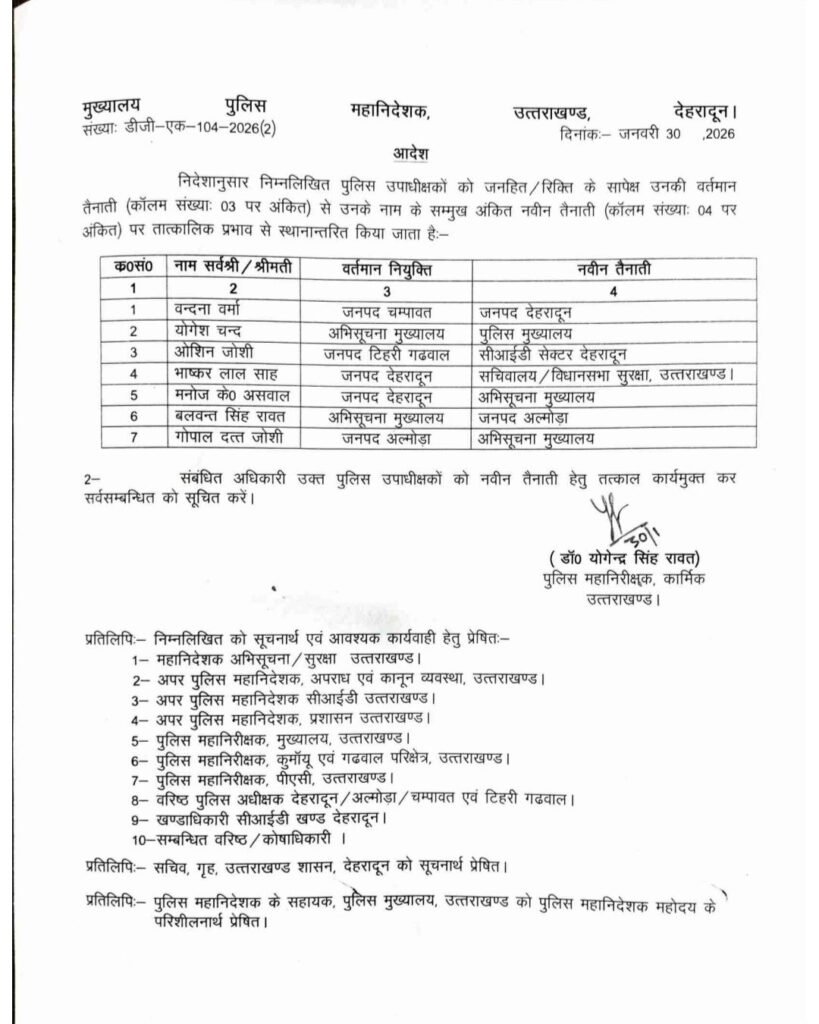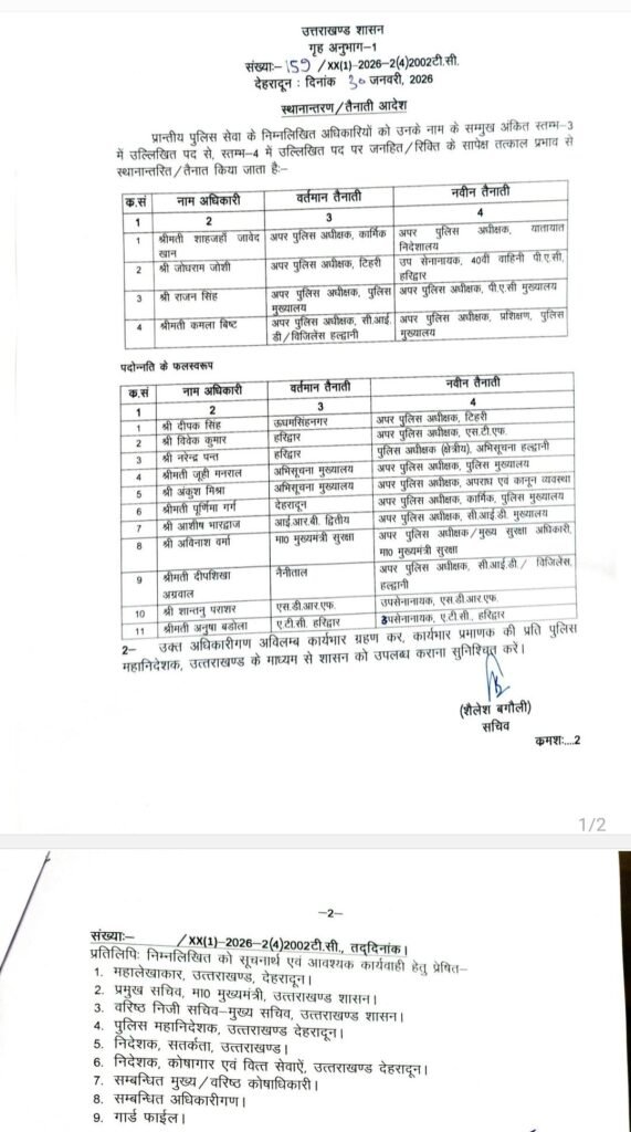 देहरादून। उत्तराखंड पुलिस महकमे में एक बार फिर से महत्वपूर्ण प्रशासनिक फेरबदल किया गया है। इसमें 15 अपर पुलिस अधीक्षक (एएसपी) और 7 पुलिस उपाधीक्षक (डीएसपी) के तबादले शामिल हैं। इस निर्णय का उद्देश्य कानून व्यवस्था को मजबूती प्रदान करना और खुफिया तंत्र को और अधिक प्रभावी बनाना है।