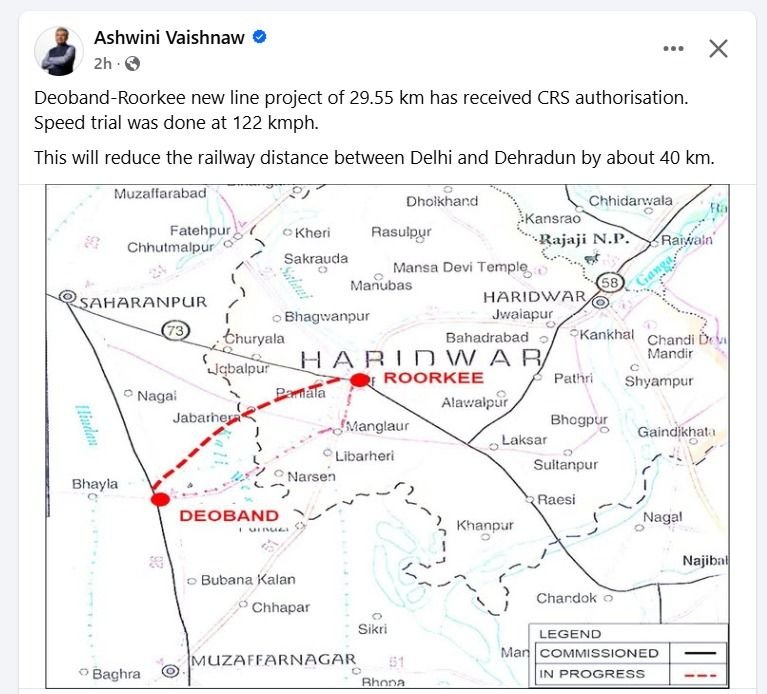 देवबंद-रुड़की नई रेल लाइन परियोजना को मिली सीआरएस से मंजूरी, स्पीड ट्रायल सफल