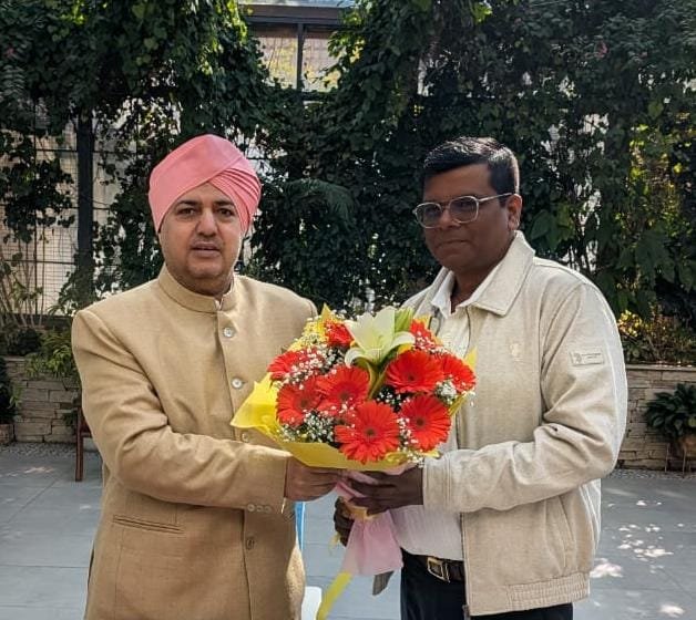 देहरादून। मंगलवार का सूरज अभी पूरी तरह चमक रहा था जब श्री महंत इन्दिरेश अस्पताल के चेयरमैन एवं पूज्य श्रीमहंत देवेंद्र दास जी महाराज से क्रिकेट एसोसिएशन ऑफ उत्तराखंड (CAU) के पूर्व सचिव महिम वर्मा ने हार्दिक शिष्टाचार भेंट की। मुस्कुराते चेहरे के साथ वर्मा ने पूज्य महाराज को नववर्ष 2026 की जोश भरी शुभकामनाएं दीं और एक ताजा, सुगंधित पुष्पगुच्छ भेंट कर उनका आशीर्वाद लिया।