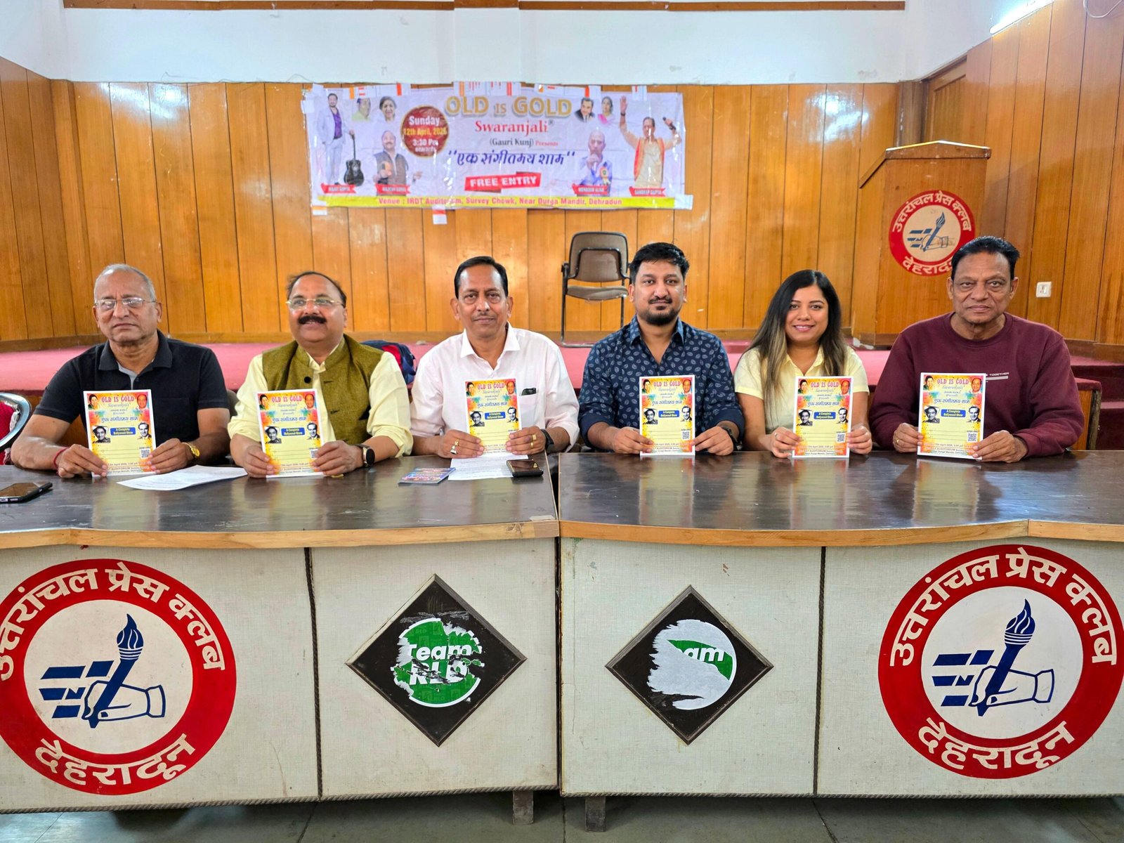 देहरादून । दून के संगीत प्रेमी 12 अप्रैल को दोपहर 3 बजे से सर्वे चौक स्थित आईआरडीटी ऑडिटोरियम में आयोजित ‘ओल्ड इज़ गोल्ड नाइट’ बाय स्वरांजली का आनंद ले सकेंगे। इस कार्यक्रम की घोषणा आज देहरादून प्रेस क्लब में आयोजित एक प्रेस वार्ता के दौरान की गई।