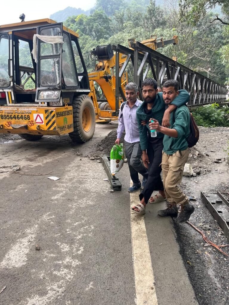 जिलाधिकारी के निर्देश पर उप जिलाधिकारी मसूरी राहुल कुमार और उप जिलाधिकारी कुमकुम जोशी ने प्रशासनिक टीम व पुलिस-राजस्व कर्मियों की मदद से मरीजों को पहले वाहन, फिर खाई पार कराकर एंबुलेंस से देहरादून अस्पताल तक पहुंचाया।