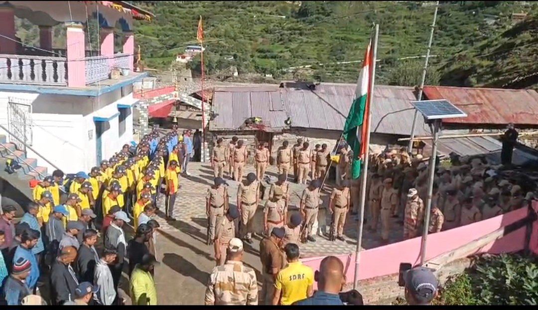 धराली गांव के खीरगंगा तट पर सुरक्षित बचे समेश्वर देवता मंदिर प्रांगण में ग्रामीणों ने आपदा राहत कर्मियों के साथ ध्वजारोहण किया। एसडीआरएफ के आईजी अरुण मोहन जोशी ने तिरंगा फहराकर प्रभावितों को हरसंभव सहायता का आश्वासन दिया। इस अवसर पर आपदा में मृत लोगों की स्मृति में दो मिनट का मौन रखकर श्रद्धांजलि अर्पित की गई। ग्रामीणों और राहत कर्मियों ने आपदा से उबरने और पुनर्निर्माण की दिशा में साझा संकल्प भी लिया।