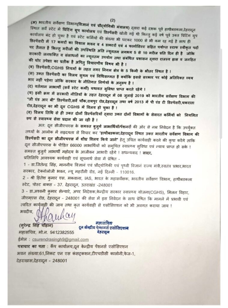 दून केंद्रीय पेंशनर्स एसोसिएशन का पत्र यहां देखें