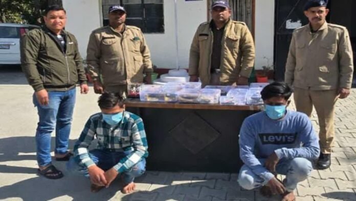 पूछताछ में संदिग्धों की पहचान सूरज साहनी और अंकित के रूप में की गई। दोनों की तलाशी में 2 हैंडबैग में चोरी के सोना-चांदी के आभूषण और नकदी बरामद हुई। पूछताछ में दोनों ने आभूषण और नकदी बसंत विहार क्षेत्र स्थित एक बंद घर से चोरी करना बताया गया। पुलिस द्वार दोनों आरोपियों को मौके से गिरफ्तार किया गया।