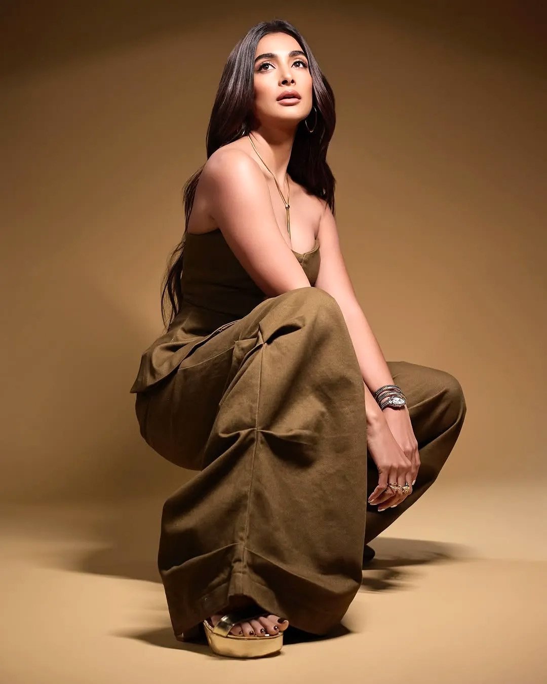 एक्ट्रेस पूजा हेगड़े की इन फोटोज में आप देख सकते हैं उन्होंने ब्राउन कलर का ऑफ शोल्डर लुक में जंपसूट पहना हुआ है, जिसमें वो एक से बढक़र एक स्टनिंग अंदाज में पोज देती हुई नजर आ रही हैं।