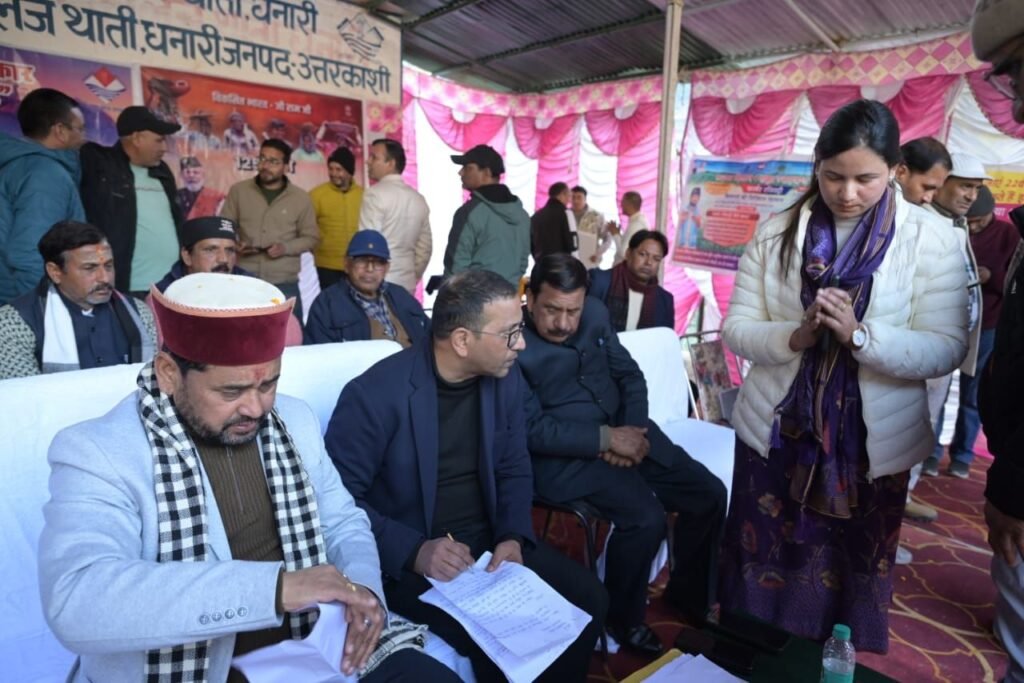धनारी (उत्तरकाशी)। मुख्यमंत्री पुष्कर सिंह धामी के निर्देश पर उत्तरकाशी जिले में चल रहे “जन–जन की सरकार, जन–जन के द्वार” अभियान के तहत न्याय पंचायत पिपली में शनिवार को विशाल जन सेवा शिविर का आयोजन किया गया। विकासखंड डुंडा की न्याय पंचायत पिपली के राजकीय इंटर कॉलेज थाती धनारी में आयोजित इस शिविर की अध्यक्षता विधायक गंगोत्री सुरेश चौहान ने की, जबकि जिलाधिकारी प्रशांत आर्य विशेष रूप से उपस्थित रहे। शिविर में 1570 से अधिक ग्रामीणों ने भाग लिया और विभिन्न समस्याओं को रखा।