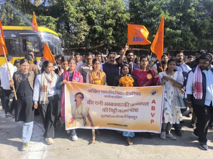 अभाविप राष्ट्रीय अधिवेशन में पहुंची रानी अब्बक्का कलश यात्रा, हुआ भव्य स्वागत