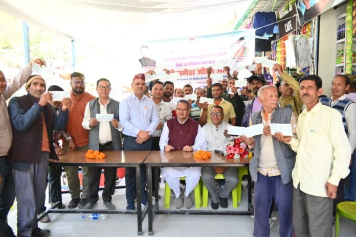 सहस्त्रधारा: आपदा प्रभावित दुकानदारों को कैबिनेट मंत्री गणेश जोशी ने वितरित किए सहायता राशि के चेक