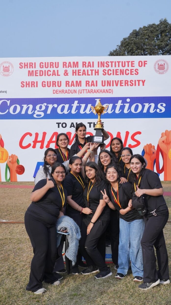 देहरादून। श्री गुरु राम राय इंस्टीट्यूट ऑफ मेडिकल एंड हेल्थ साइंसेज में वार्षिक खेलकूद प्रतियोगिता एटलिटिका-2025 का शनिवार को रंगारंग प्रस्तुतियों के साथ समापन हो गया। तीन दिवसयी वार्षिक खेलकूद प्रतियोगिताओं में विभिन्न स्पर्धाएं खेली गईं। एमबीबीएस बैच 2021 के खिलाडियों ने सर्वश्रेष्ठ प्रदर्शन करते हुए आॅवरआॅल चैम्पियन का खिताब अपने नाम किया। श्री गुरु राम राय इंस्टीट्यूट आॅफ मेडिकल एण्ड हैल्थ साइंसेज के प्राचार्य डाॅ अशोक नायक, श्री महंत इन्दिरेश अस्पताल के मुख्य चिकित्सा अधीक्षक डाॅ अनिल कुमार मलिक एवम् डाॅ संजय साधु चेयरपर्सन, खेल आयोजन समिति ने विजेताओं को पुरस्कार देकर सम्मानित किया।