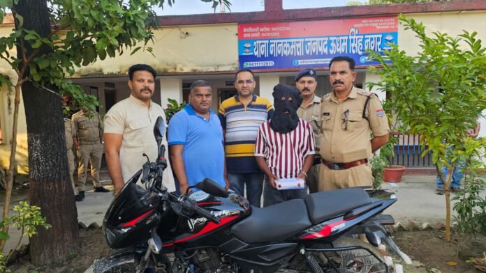 देहरादून । उत्तराखंड स्पेशल टास्क फोर्स (STF) की एंटी नार्कोटिक्स टास्क फोर्स कुमाऊं यूनिट ने जनपद उधम सिंह नगर के थाना ननकमत्ता पुलिस टीम के साथ संयुक्त अभियान चलाकर नशा तस्करों पर कड़ा प्रहार किया। इस कार्रवाई में किच्छा क्षेत्र के लालपुर से 151.17 ग्राम अवैध हीरोइन व एक बिना नंबर प्लेट की पल्सर मोटरसाइकिल के साथ एक तस्कर को गिरफ्तार किया गया, जिसकी अनुमानित कीमत करीब 45 लाख रुपये बताई गई है।