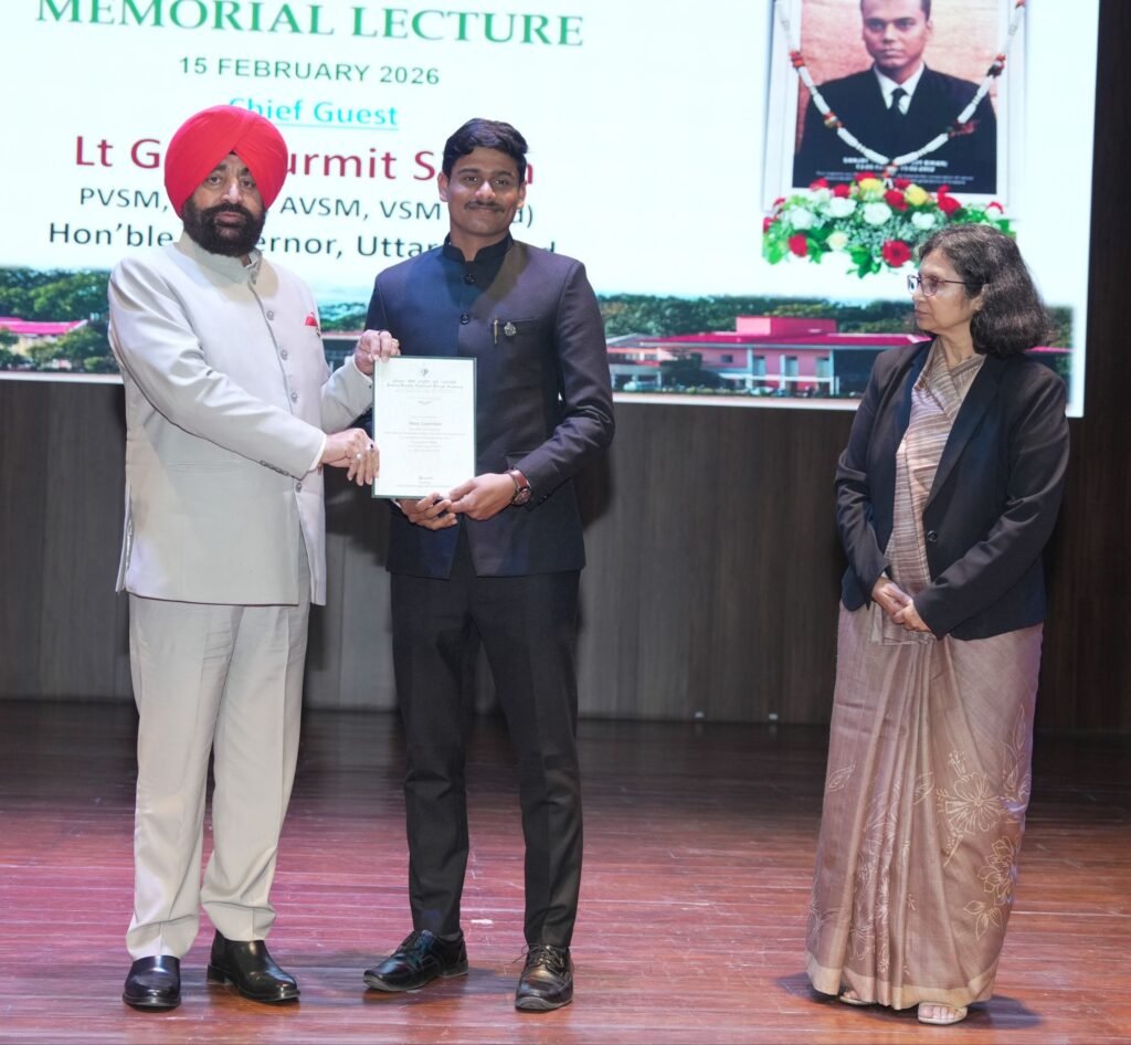 इस अवसर पर राज्यपाल ने स्व संजय सिंह के पिता श्री घनश्याम नारायण सिंह एवं श्रीमती कांति को शॉल ओड़ाकर सम्मानित किया। साथ ही उन्होंने वर्ष 2025 बैच में प्रशिक्षण के दौरान श्रेष्ठ प्रदर्शन करने वाले अधिकारियों को सम्मानित किया। कार्यक्रम में वन अकादमी की निदेशक श्रीमती भारती, पीसीसीएफ हॉफ उत्तराखण्ड रंजन कुमार मिश्रा एवं वन अकादमी के अन्य अधिकारी सहित प्रशिक्षु अधिकारी मौजूद रहे।
