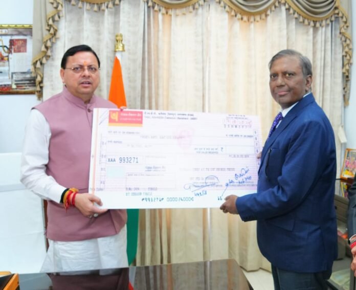 ऋषिकेश : उत्तराखंड राज्य के कल्याण और विकास के प्रति अपनी प्रतिबद्धता की पुष्टि करते हुए, टीएचडीसी इंडिया लिमिटेड ने उत्तराखंड के मुख्यमंत्री राहत कोष में 1 करोड़ रुपये का योगदान दिया। उत्तराखंड के माननीय मुख्यमंत्री पुष्कर सिंह धामी को टीएचडीसी इंडिया लिमिटेड के अध्यक्ष एवं प्रबंध निदेशक, आर. के. विश्नोई ने टीएचडीसी इंडिया लिमिटेड के योगदान का ड्राफ्ट भेंट किया। इस अवसर पर टीएचडीसी इंडिया लिमिटेड के निदेशक (वित्त), सिपन कुमार गर्ग भी उपस्थित थे।