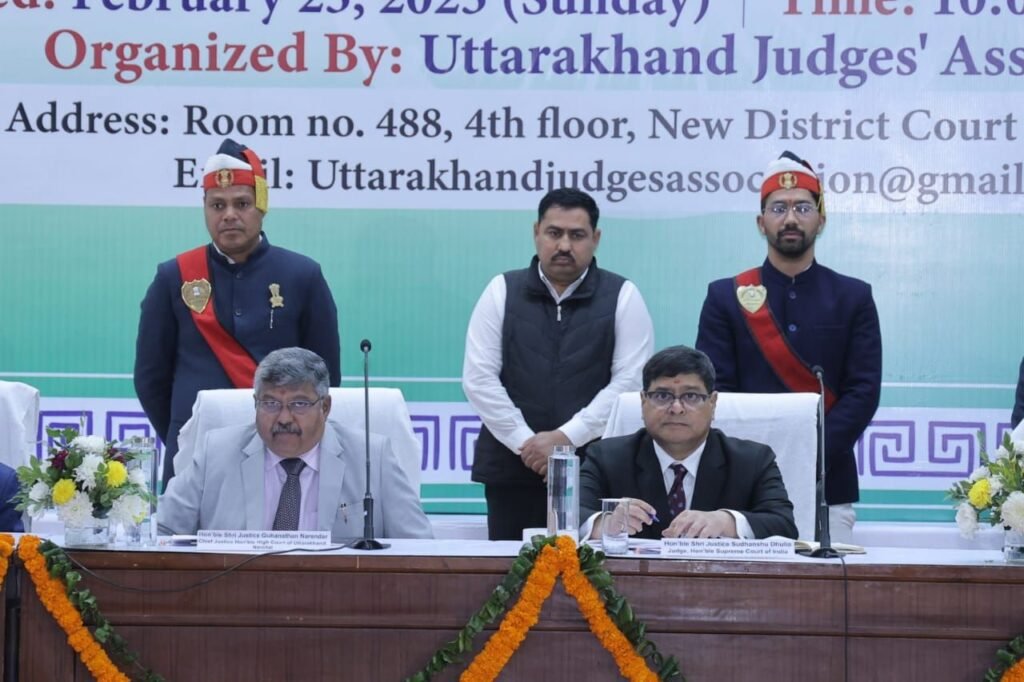 देहरादून ,24 फरवरी, 2025(सू.वि.) । उत्तराखंड जजेस एसोसिएशन का वार्षिक सम्मेलन, दून विश्वविद्यालय सभागार, देहरादून में दिनांक 23.02.2025 रविवार को सफलतापूर्वक सम्पन्न हुआ है, जिसमें समारोह में मुख्य अतिथि के तौर पर मा० सर्वोच्च न्यायालय, नई दिल्ली के न्यायाधीश, मा० न्यायमूर्ति श्री सुधांशू धूलिया जी उपस्थित रहे। जिन्होंने उत्तराखंड जजेज एसोसिएशन को शुभकामनाएं देते हुए अपने सम्बोधन में उत्तराखण्ड राज्य के समस्त न्यायिक अधिकारियों को कहा कि न्यायपालिका के सामने वादकारी एक उम्मीद से आते हैं तथा पीठासीन न्यायाधीशों का यह दायित्व है कि विवादित मामले का निस्तारण शीघ्रता पूर्वक करें, उन्होंने विभिन्न न्यायालयों में विचाराधीन वादों में लम्बी तिथियाँ दिये जाने के दृष्टिकोण को भी बदलने के लिए न्यायाधीशों से आह्वान किया है। यह भी कहा कि बदलती हुई वर्तमान परिस्थितियों में परंपरागत न्याय प्रक्रिया के अनुरूप ढालने की आवश्यकता है।