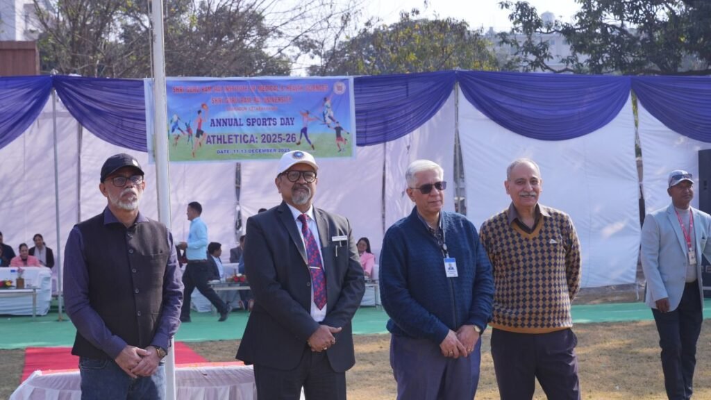 देहरादून। श्री गुरु राम राय इंस्टीट्यूट ऑफ मेडिकल एंड हेल्थ साइंसेज में वार्षिक खेलकूद प्रतियोगिता एटलिटिका-2025 का रंगारंग शुभारंभ गुरुवार को हुआ। खेल मैदान में उमड़ी ऊर्जा और उत्साह ने खेल भावना का शानदार उदाहरण प्रस्तुत किया, जहां प्रतिभागी छात्र-छात्राओं ने प्रतिस्पर्धा को मैत्रीपूर्ण खेलभावना के साथ जीने का संदेश दिया। इस अवसर पर श्री गुरु राम राय विश्वविद्यालय के माननीय प्रेसीडेंट एवम् श्री गुरु राम राय इंस्टीट्यूट आॅफ मेडिकल एण्ड हैल्थ साइंसेज़ के चेयरमैन श्रीमहंत देवेन्द्र दास जी महाराज ने सभी प्रतिभागी मेडिकल छात्र-छात्राओं को एटलिटिका-2025 के आयोजन पर शुभकामनाएं प्रेषित कीं।