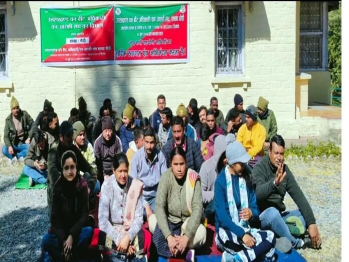 पौड़ी(आरएनएस)। वन विभाग के वन बीट अधिकारियों का कार्यबहिष्कार शुक्रवार को दूसरे दिन भी जारी रहा। वन बीट अधिकारियों की हड़ताल से वन विभाग में वनाग्नि सुरक्षा, कंट्रोल वर्निंग, वनाग्नि रोकथाम को लेकर गश्त सहित अन्य कार्य प्रभावित होने लगे हैं। वन बीट अधिकारी नियमाली 2016 लागू किए जाने, एक स्टार सुविधा और आवास भत्ता दिए जाने की मांग को लेकर बीते गुरुवार से अनिश्चितकालीन कार्यबहिष्कार पर चले गए है। वन बीट अधिकारियों के कार्य बहिष्कार से फायर सीजन में वन विभाग की मुश्किले बढ़ सकती हैं। शुक्रवार को गढ़वाल वन प्रभाग व सिविल एवं सोयम वन प्रभाग के 40 से अधिक वन बीट अधिकारियों ने मुख्य वन संरक्षक गढ़वाल कार्यालय परिसर में धरना दिया। इस दौरान धरना देते हुए उत्तराखंड वन बीट अधिकारी/वन आरक्षी संघ के पदाधिकारियों ने कहा कि वन बीट अधिकारी पिछले लंबे समय से नियमावली 2016 लागू करने, एक स्टार सुविधा प्रदान किए जाने और चौकियों में तैनाती के दौरान आवास भत्ता प्रदान किए जाने की मांग कर रहे हैं लेकिन सरकार लगातार उनकी मांगों को अनदेखा कर रही है। जिससे वन बीट अधिकारियों में नाराजगी बनी हुई है। कहा कि मजबूरन संघ को अनिश्चितकालीन कार्य बहिष्कार का निर्णय लेना पड़ा है। चेतावनी दी कि जल्द मांगे पूरी नहीं होने पर उग्र आंदोलन किया जाएगा। कार्यबहिष्कार में संघ के जिलाध्यक्ष शीशपाल सिंह चौहान, सचिव पंकज नेगी, राजेंद्र सिंह, नरोत्तम प्रसाद, भागीरथी देवी, गीता देवी, हिमांशु नेगी, मदन बिष्ट, कुसुम आदि शामिल रहे।