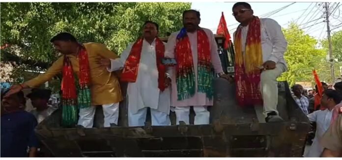 बुलडोजर पर सवार हुए आदेश प्रताप सिंह