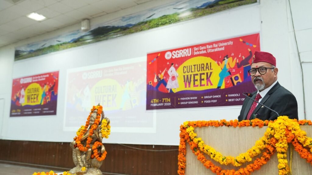देहरादून। श्री गुरु राम राय विश्वविद्यालय में सांस्कृतिक उल्लास, रचनात्मकता और छात्र ऊर्जा का अद्भुत संगम देखने को मिला। बुधवार को विश्वविद्यालय परिसर में सांस्कृतिक सप्ताह का भव्य शुभारंभ हुआ। 4 फरवरी से 7 फरवरी तक चलने वाले इस आयोजन में छात्र-छात्राओं ने बढ़-चढ़कर भागीदारी करते हुए अपनी सांस्कृतिक, कलात्मक और रचनात्मक प्रतिभाओं का शानदार प्रदर्शन किया। इस अवसर पर विश्वविद्यालय के माननीय प्रेसिडेंट श्रीमहंत देवेंद्र दास जी महाराज ने कार्यक्रम के आयोजकों को शुभकामनाएं प्रेषित कीं।