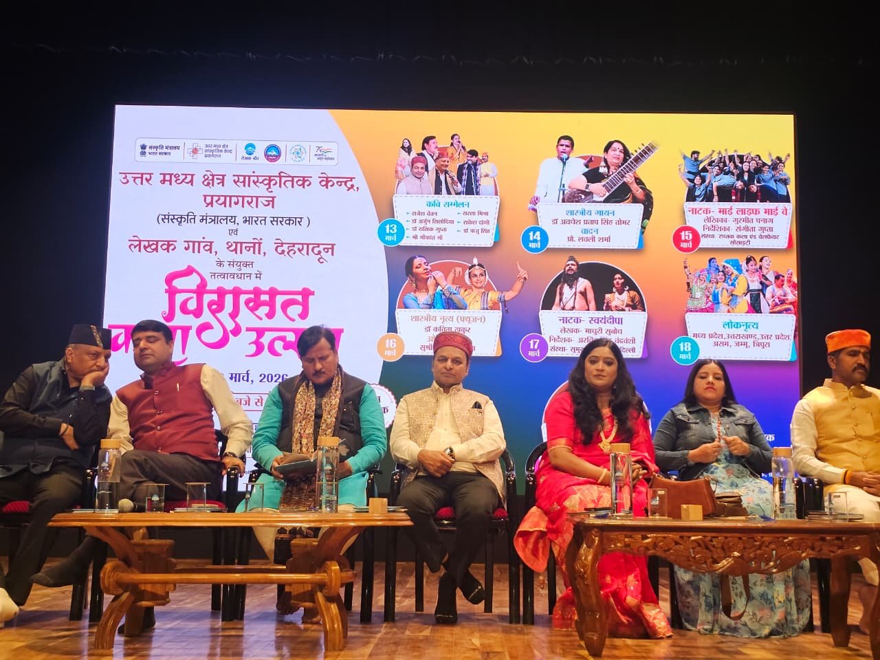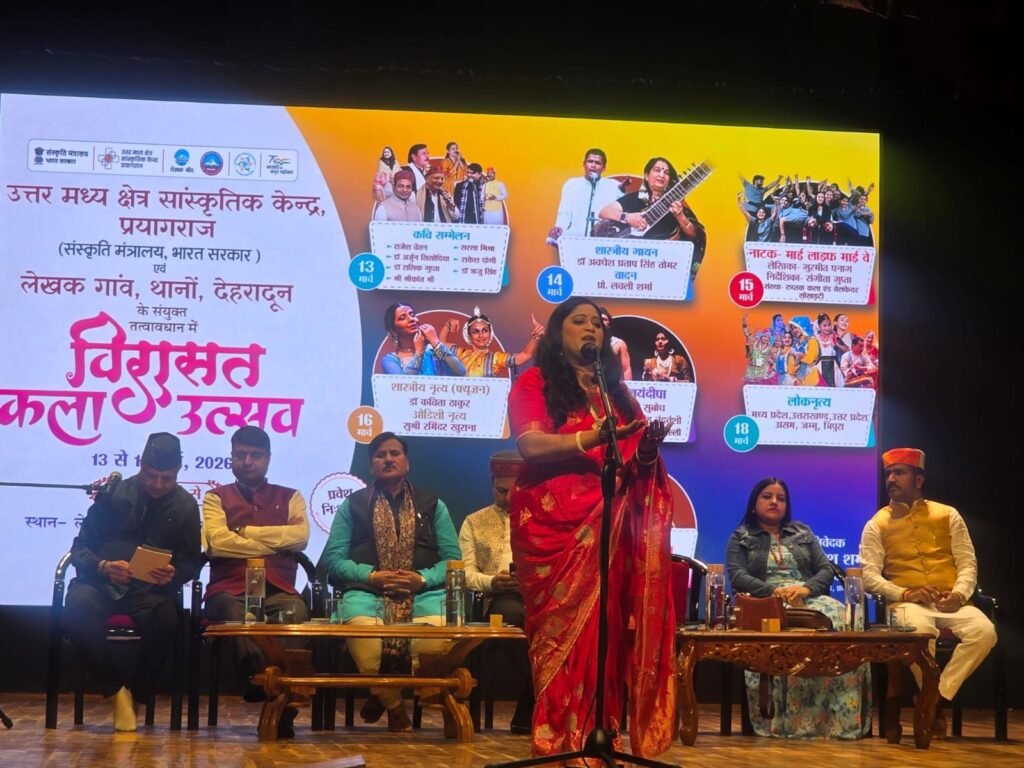 अवसर था उत्तर मध्य क्षेत्र सांस्कृतिक केंद्र, संस्कृति मंत्रालय, भारत सरकार एवं लेखक गाँव, थानों, देहरादून के संयुक्त तत्वावधान में आयोजित सात दिवसीय “विरासत कला उत्सव” के भव्य उद्घाटन का। दीप प्रज्वलन के साथ शुरू हुए इस आयोजन में देश के विभिन्न हिस्सों से आए कवियों ने अपनी ओज, व्यंग्य और संवेदना से भरी रचनाओं से श्रोताओं को देर तक बांधे रखा।