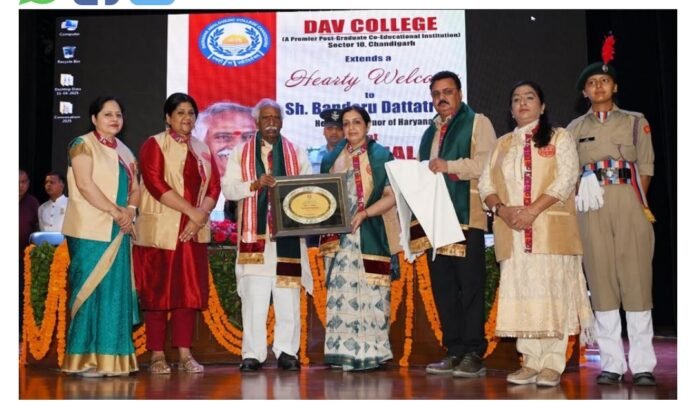 दत्तात्रेय ने शुक्रवार को चंडीगढ़ के सेक्टर 10 स्थित डीएवी कॉलेज के दीक्षांत समारोह में कॉलेज की प्रशंसा करते हुए कहा कि यह शैक्षणिक कठोरता और समग्र विकास का केंद्र है, तथा उन्होंने ईमानदारी, दृढ़ता और सेवा के शाश्वत मूल्यों पर जोर दिया। राज्यपाल ने समारोह में विद्यार्थियों को कुल 944 डिग्रियाँ प्रदान की। उन्होंने अपने संबोधन में विद्यार्थियों से कहा कि आप देश का भविष्य हैं। आप सभी को जीवन में आने वाली चुनौतियों एवं समस्याओं का समाधान बेहतर कौशल, साहस एवं सूझबूझ से करके राष्ट्र के विकास में महत्वपूर्ण योगदान देकर विकसित भारत के लक्ष्य को प्राप्त करना है।