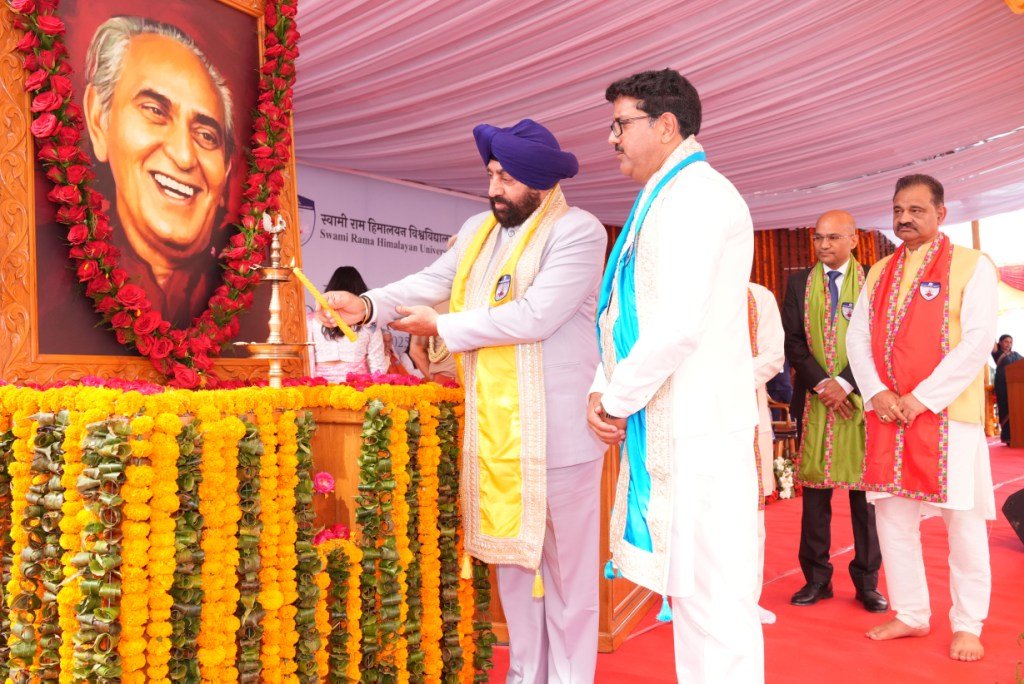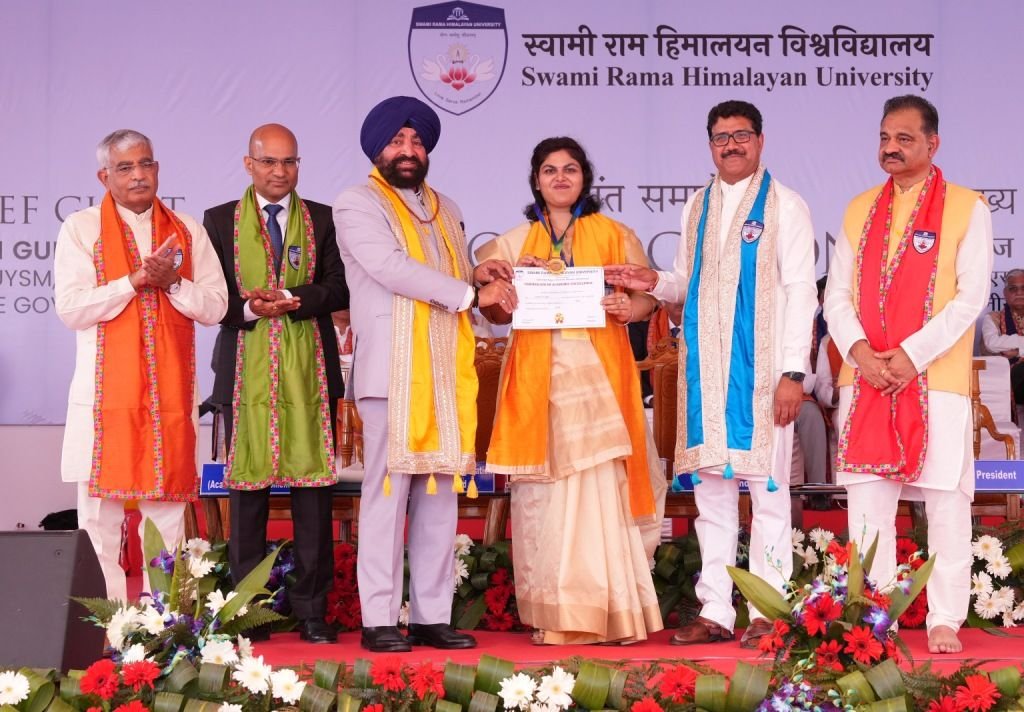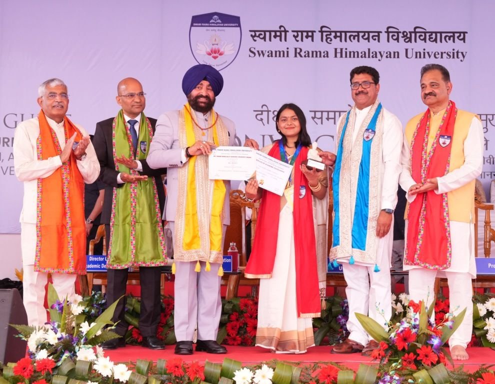 देहरादून(आरएनएस)। कुलाधिपति/राज्यपाल लेफ्टिनेंट जनरल गुरमीत सिंह (से नि) ने सोमवार को स्वामी राम हिमालयन विश्वविद्यालय, जौलीग्रांट, देहरादून के सातवें दीक्षांत समारोह में बतौर मुख्य अतिथि प्रतिभाग किया। इस अवसर पर उन्होंने विद्यार्थियों को उपाधियाँ प्रदान कर उन्हें उज्ज्वल भविष्य की शुभकामनाएं दीं। दीक्षांत समारोह में सर्वश्रेष्ठ प्रदर्शन करने वाले छात्र-छात्राओं को स्वर्ण पदक प्रदान किए गए। पदक पाने वालों में अधिकांश संख्या बालिकाओं की होने पर उन्होंने प्रसन्नता व्यक्त की और इसे नारी सशक्तीकरण का प्रतीक बताया। राज्यपाल ने कहा कि यह एक बहुत बड़ा परिवर्तन है, जो दर्शाता है कि बेटियां आज हर क्षेत्र में अपनी प्रतिभा और क्षमता का परचम लहरा रही हैं। महिलाएं राष्ट्र निर्माण में अपनी सशक्त भूमिका निभाकर, प्रगति और विकास की राह में सबसे आगे खड़ी हैं।