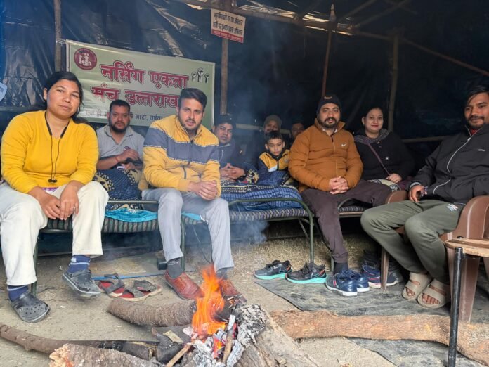 देहरादून/एकता बिहार। नर्सिंग भर्ती से जुड़ी मांगों को लेकर चल रहा आंदोलन कड़ाके की सर्दी में भी अडिग होकर आज 51वें दिन में प्रवेश कर गया। ‘एकता बिहार’ धरना स्थल पर डटे नर्सिंग कर्मी सरकार की चुप्पी और लचर रवैये से आक्रोशित हैं, जबकि उनका आंदोलन शांतिपूर्ण बना हुआ है।
