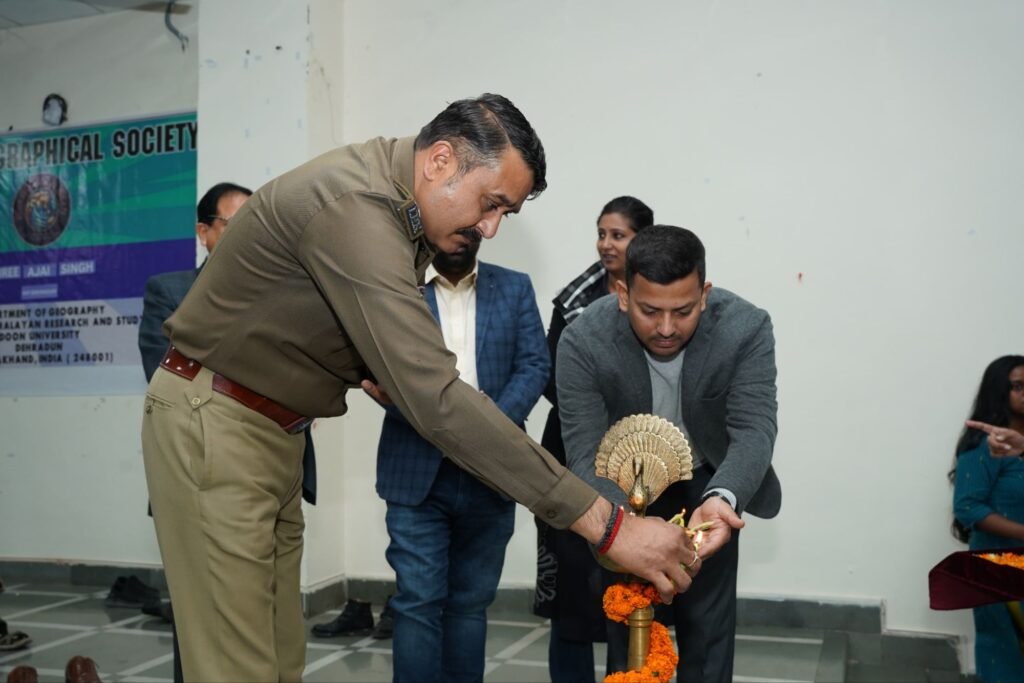 कार्यक्रम के दौरान दून यूनिवर्सिटी भूगोल विभाग के विभागाध्यक्ष, डॉ0 अभिजीत सहाय, ज्यॉग्रॉफिकल सोसाइटी के अध्यक्ष श्रीमती इशु, उपाध्यक्ष अनिरूद्व कुमार यादव, अन्य पदाधिकारी तथा छात्र-छात्राएं उपस्थित रहें।