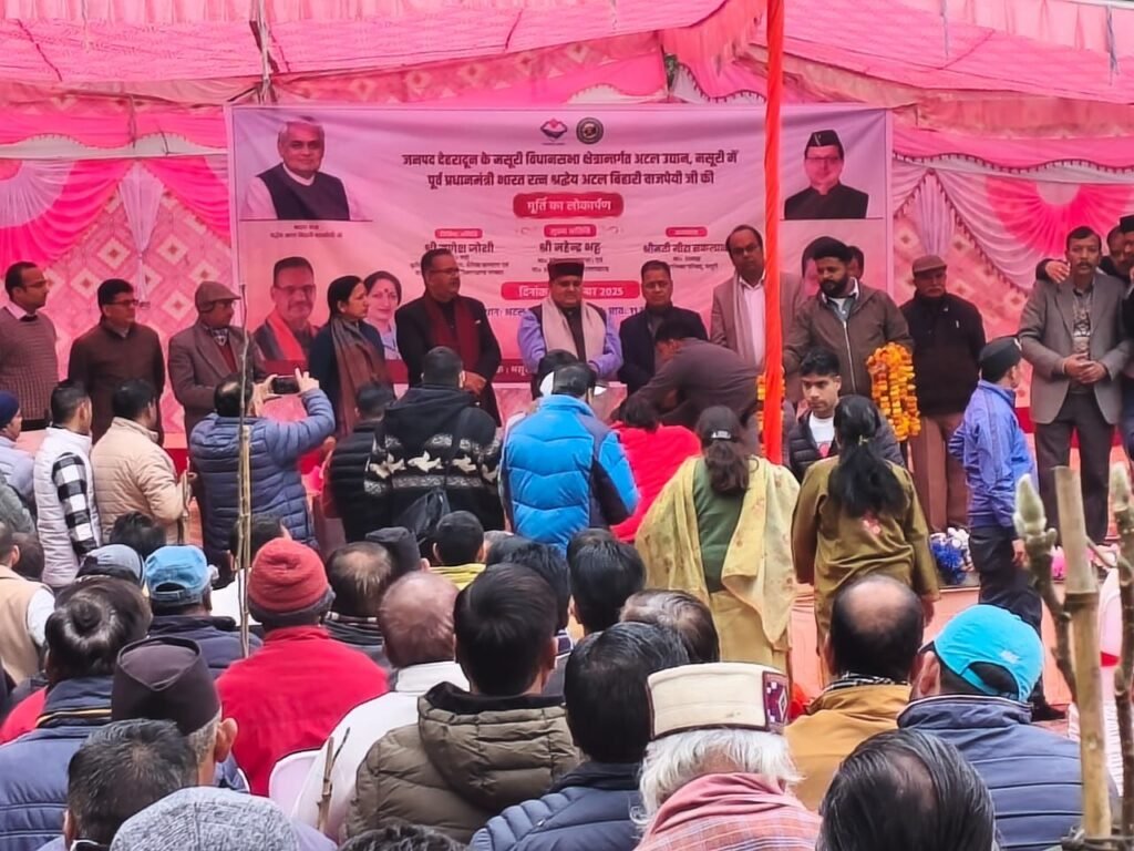 मसूरी / देहरादून। मसूरी–देहरादून विकास प्राधिकरण द्वारा मसूरी स्थित अटल उद्यान में भारत के पूर्व प्रधानमंत्री एवं भारत रत्न अटल बिहारी वाजपेयी की भव्य प्रतिमा का लोकार्पण आज अत्यंत गरिमामय वातावरण में संपन्न हुआ। लगभग 23 लाख रुपये की लागत से निर्मित यह प्रतिमा राष्ट्र के प्रति अटल जी के अतुलनीय योगदान, उनके दूरदर्शी नेतृत्व और लोकतांत्रिक मूल्यों के प्रति उनकी अटूट प्रतिबद्धता का स्थायी प्रतीक है।