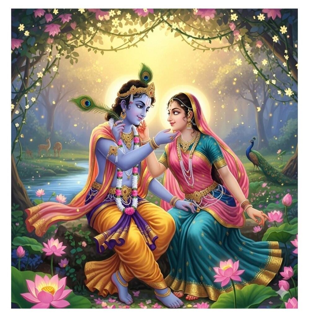 भगवान कृष्ण ने जब श्री राधा को देखा तो वे बहुत खुश हुए। दोनों ने मन ही मन काफी देर तक एक दूसरे से बात करते रहें। कृष्ण की नगरी द्वारका में राधा जी को कोई नहीं जानता था। राधा के अनुरोध पर कान्हा ने उन्हें एक देविका के रूप में नियुक्त किया था। राधा रानी महल में रहने के दौरान अपने प्रियतम कृष्ण के दर्शन कर लेती थी। लेकिन कहते हैं कि वे महल में रहकर अपने कान्हा के साथ आध्यात्मिक जुड़ाव महसूस नहीं कर पा रही थी। इसलिए उन्होंने महल से दूर जाने का निर्णय लिया। कहते हैं महल से जाने के बाद उन्हें खुद नहीं पता था कि वे कहा जा रही है। हालांकि भगवान श्री कृष्ण सब कुछ जानते थें। समय के चलते हुए राधा रानी अकेली और कमज़ोर हो गई। ऐसे आखिरी समय में भगवान श्री कृष्ण उनके सामने आ गए।