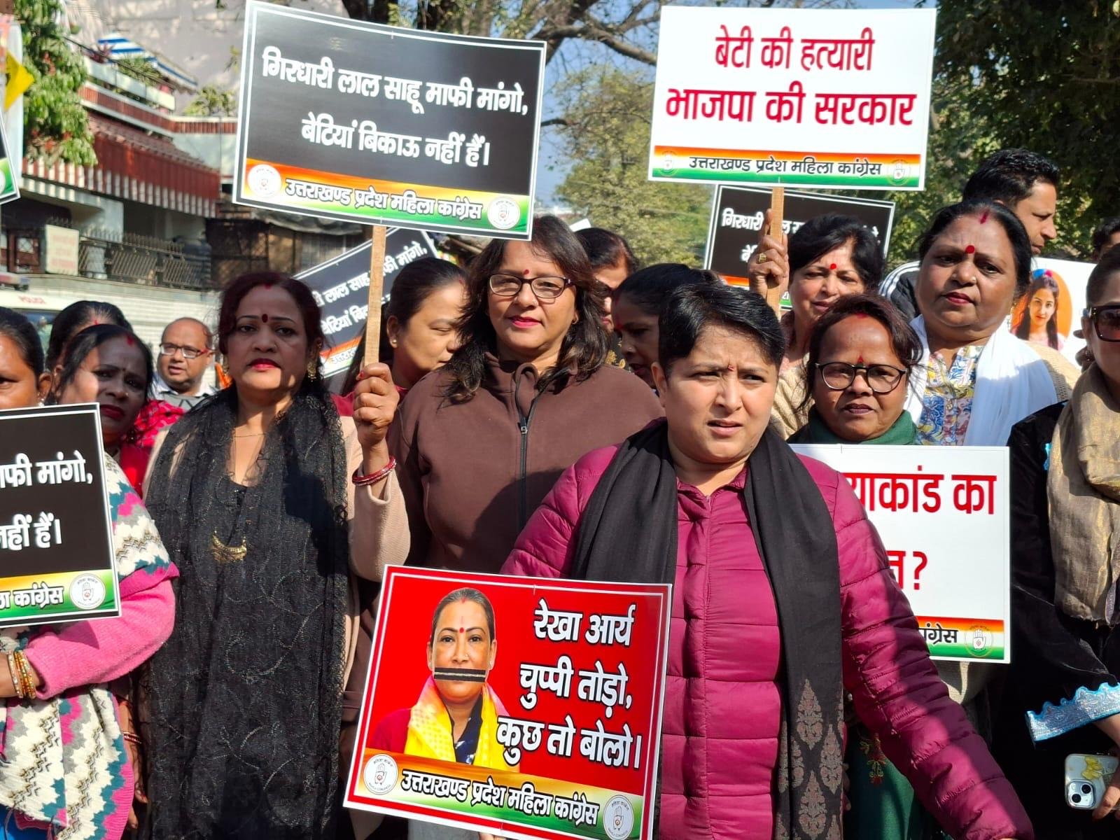 देहरादून, 2 जनवरी। उत्तराखंड प्रदेश महिला कांग्रेस ने अंकिता भंडारी हत्याकांड में शामिल वीआईपी के खिलाफ कार्रवाई की मांग को लेकर और महिला सशक्तिकरण मंत्री रेखा आर्य के पति गिरधारी लाल साहू के विवादास्पद बयान के विरोध में आज जोरदार प्रदर्शन किया। प्रदेश अध्यक्ष ज्योति रौतेला के नेतृत्व में कार्यकर्ताओं ने मंत्री के यमुना कॉलोनी स्थित आवास का घेराव कर दो मुद्दों पर सरकार को घेरा।