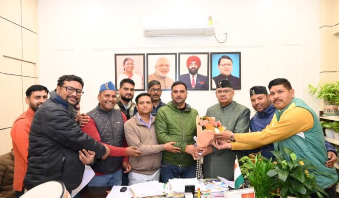देहरादून । सैनिक कल्याण मंत्री गणेश जोशी से आज उनके कैंप कार्यालय में उपनल कर्मचारी महासंघ के पदाधिकारियों ने भेंट कर राज्य सरकार द्वारा जारी किए गए 12 साल सेवा से संबंधित आदेश पर आभार व्यक्त किया।