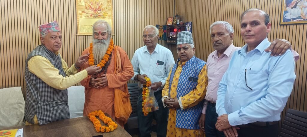 बैठक में महासंघ पदाधिकारियों व ट्रस्टी सदस्यों द्वारा विशेष रूप से आमंत्रित स्वामी दामोदरानन्द जी सरस्वती जी को महासंघ के मुख्य संरक्षक एस पी पाठक जी, पंडित रामप्रसाद गौतम जी एवं डॉ. वी डी शर्मा ने माल्यार्पण कर भव्य स्वागत किया गया।