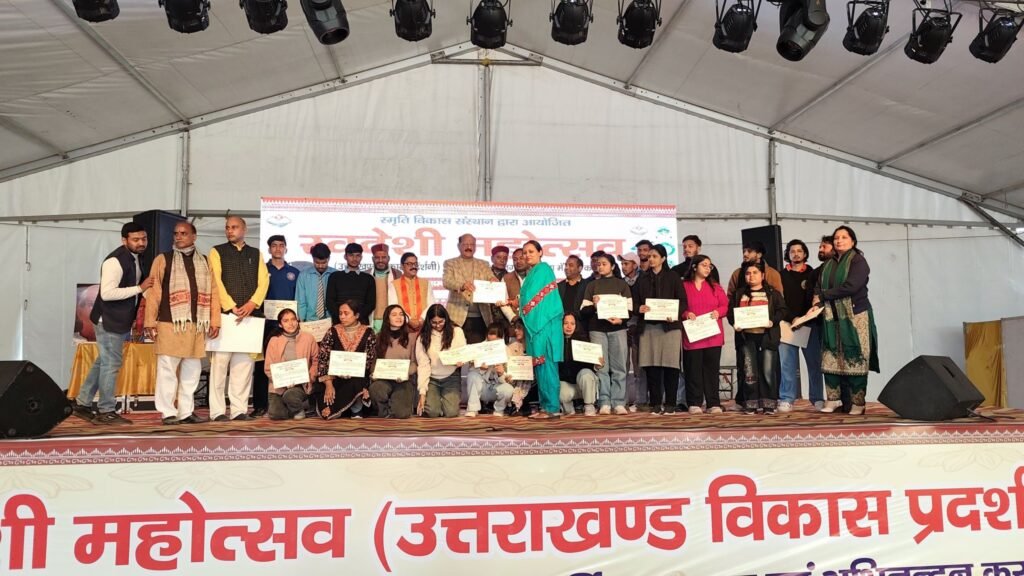 इस दौरान स्वदेशी महोत्सव की उत्तराखंड विकास प्रदर्शनी में आयोजित स्टॉल प्रतियोगिता के परिणाम भी घोषित हुए, जिसमें वन विभाग के स्टॉल को प्रथम पुरस्कार, देहरादून कॉलेज ऑफ आर्ट को द्वितीय पुरस्कार और उत्तराखंड अक्षय ऊर्जा विकास अभिकरण (उरेडा) को तृतीय पुरस्कार प्रदान किया गया। कार्यक्रम में अमिता, अंजू, जाह्नवी और मंजू सहित कई कलाकारों ने गढ़वाली गीतों पर आकर्षक सांस्कृतिक प्रस्तुतियाँ दीं। मंत्री सुबोध उनियाल ने रचनात्मक कार्यों में सक्रिय बच्चों को भी पुरस्कृत किया और उनके उज्ज्वल भविष्य की कामना की।