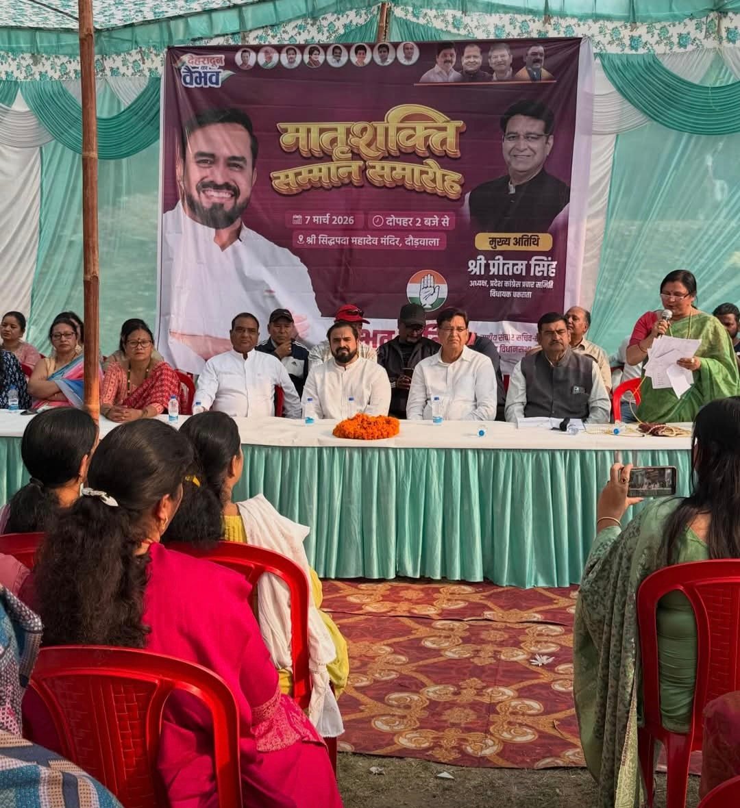 कार्यक्रम में प्रदेश कांग्रेस कैंपेन कमेटी के अध्यक्ष एवं चकराता विधायक  प्रीतम सिंह मुख्य अतिथि के रूप में उपस्थित रहे। श्री प्रीतम सिंह ने मातृशक्ति को सम्मानित करते हुए कहा कि समाज और राष्ट्र की प्रगति में महिलाओं की भूमिका अत्यंत महत्वपूर्ण है। मातृशक्ति के बिना सशक्त समाज और समृद्ध राष्ट्र की कल्पना संभव नहीं है।