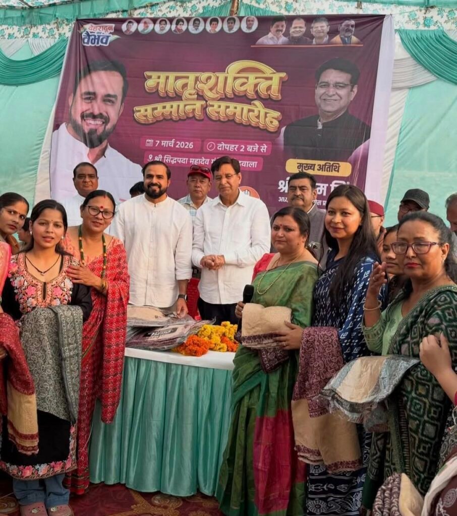 देहरादून। धर्मपुर विधानसभा क्षेत्र के मोथरोवाला वार्ड के दौड़वाला में अंतरराष्ट्रीय महिला दिवस की पूर्व संध्या पर कांग्रेस के राष्ट्रीय संचार सचिव एवं युवा नेता वैभव वालिया द्वारा मातृशक्ति सम्मान समारोह का भव्य आयोजन किया गया। इस अवसर पर क्षेत्र की 500 से अधिक माताओं-बहनों को सम्मानित कर उनके समाज निर्माण में दिए गए अमूल्य योगदान को नमन किया गया।