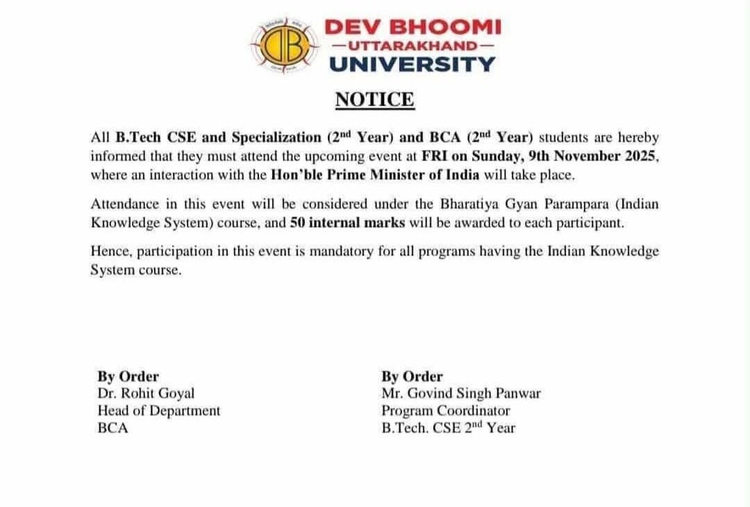 देहरादून। वीवीआईपी भ्रमण कार्यक्रम के दौरान सोशल मीडिया पर भ्रामक खबर प्रसारित करने वालों के खिलाफ पुलिस ने कड़ी कार्रवाई शुरू कर दी है। प्रेमनगर थाना क्षेत्र में एक निजी शिक्षण संस्थान के नाम से वायरल हुए एक पत्र के संबंध में पुलिस ने मामला दर्ज किया है, जिसमें दावा किया गया था कि 9 नवंबर 2025 को प्रधानमंत्री की रैली में शामिल होने पर छात्रों को अधिक अंक दिए जाएंगे।